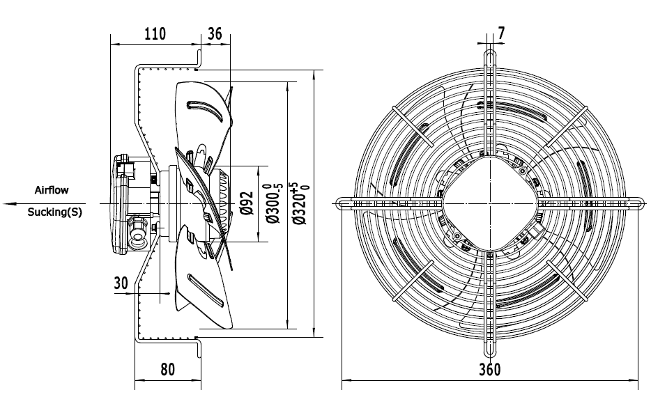 Wentylator YWF4E-300S-P92/35-G bez płyty montażowej